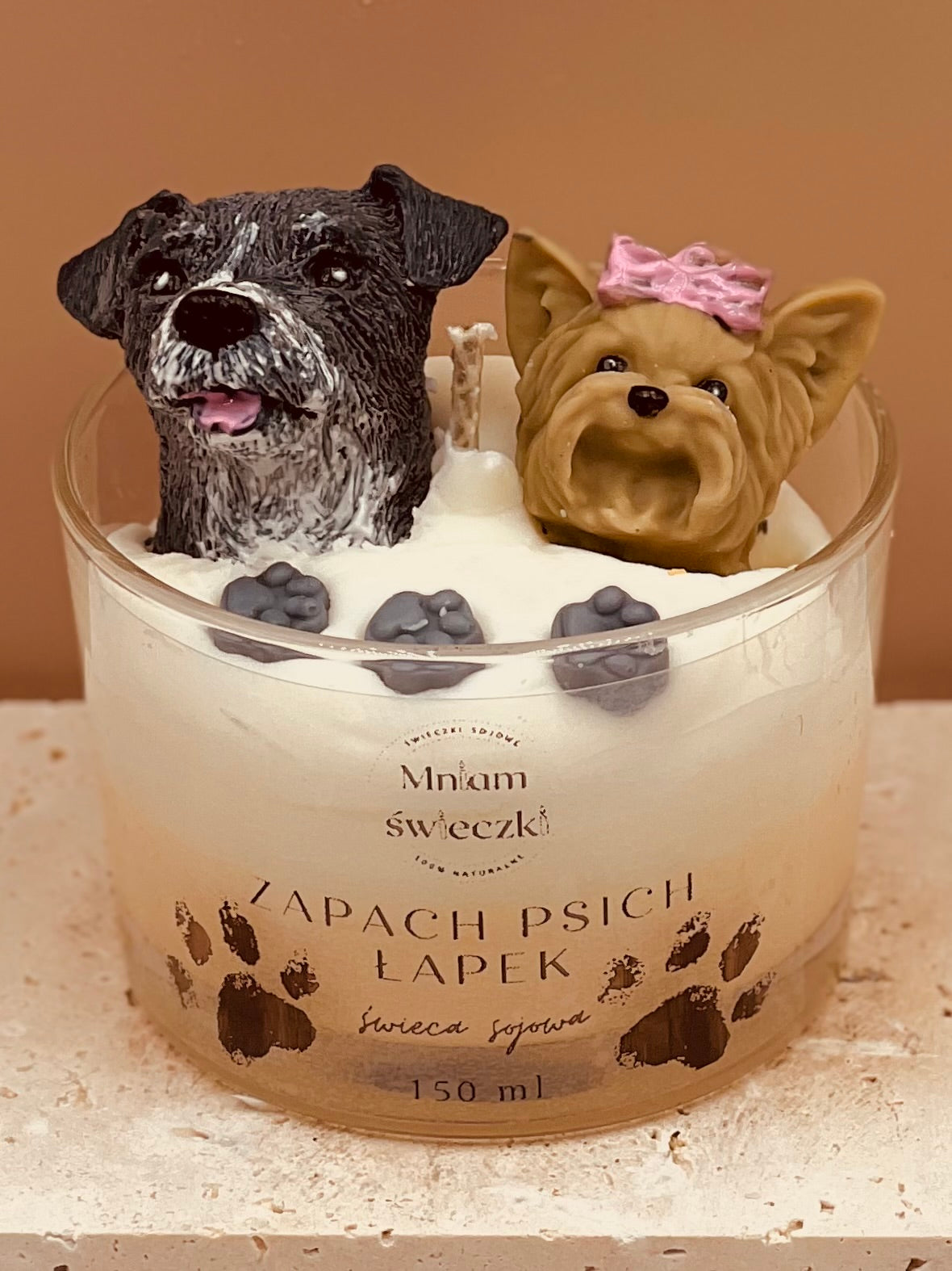 Świeca sojowa o zapachu psich łapek (produkt na zamówienie, dowolne pieski)