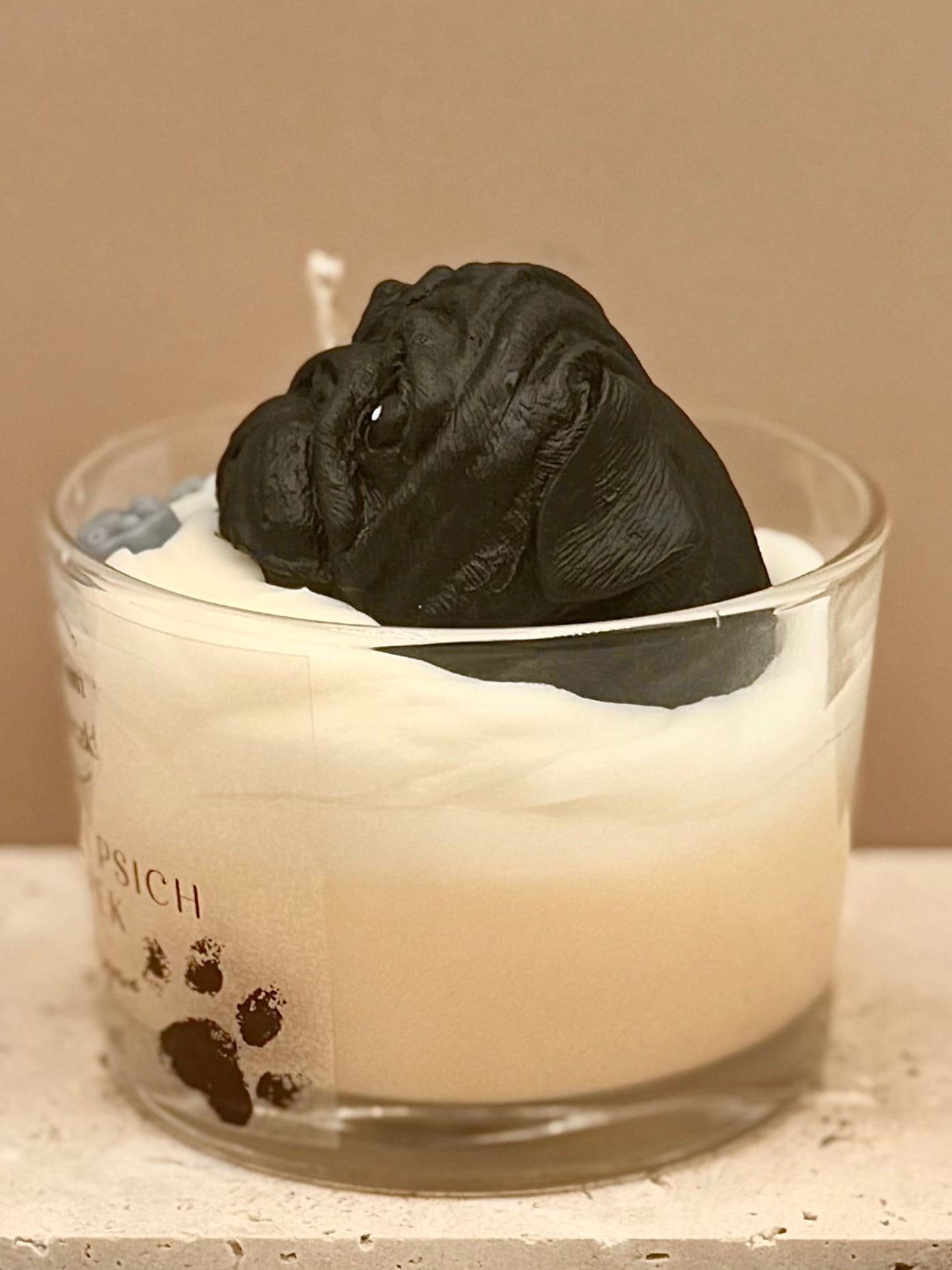 Świeca sojowa o zapachu psich łapek - Mops